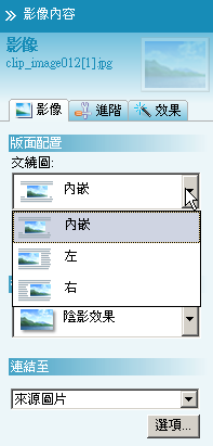 8.接著編輯網誌內容,可輸入網誌標題、內文、圖片,點選圖片後,可以選擇圖片文字排列方式,另外還可設定圖片大小、效果等;編輯完成可,可點選「儲存草稿」按鈕,將目前的網誌先儲存在本機端,或是點選「發佈」,網誌就會直接發佈至部落格。